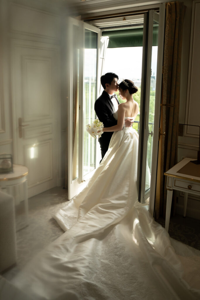 Alicia and Christophe, a Canadian-Chinese couple, celebrated their wedding at the iconic Hôtel Le Meurice in Paris, blending traditional Chinese customs with French elegance. Their day featured a meaningful tea ceremony, a refined celebration in one of Paris’ most luxurious hotels, and personalized touches reflecting their heritage and love story.
